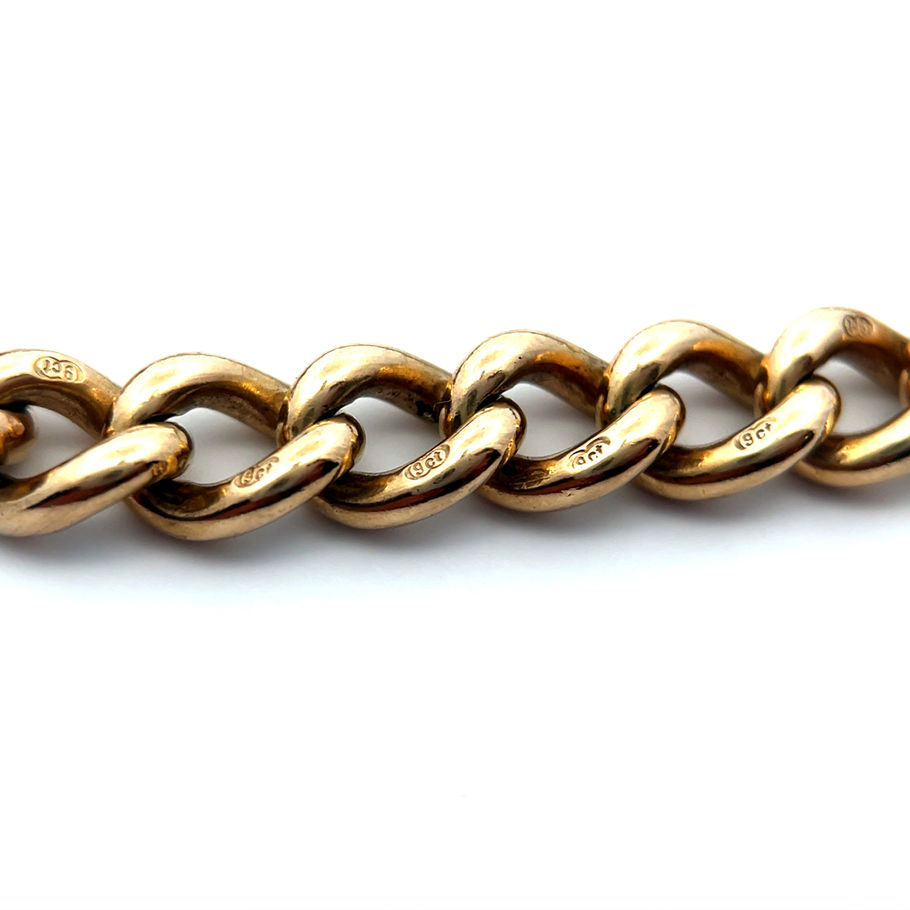 A gorgeous, pre-loved 9ct yellow gold solid curb bracelet. Total bracelet weight is 37.55 grams.